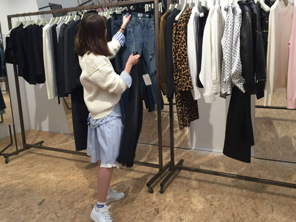 不过有时候我们可能只定上衣和外套,舍弃比较难穿的下身。如果衣服太重,或是绣片会掉这种质量问题,那再漂亮,我们也不会买。穿上身很扎的针织衫也不在我们考虑范围。其实光凭肉眼看,还是没办法清楚了解版型,所以买手挑完所有衣服后,基本都会自己试穿。比如碰到上臂袖子太窄,我们就要跟品牌反应。如果现场没有可以换衣服的地方,或是预算不那么大,我们就没时间试穿所有下身单品了,这时就会请showroom的试衣模特帮忙。