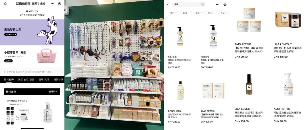 近日,美妆集合店HARMAY 话梅在线上和线下上架了众多知名宠物产品(宠物洗护用品、清洁用品、护理用品等),品牌以科颜氏、BONDI WASH、里拉爱它(LILA LOVES IT)等进口品牌为主。