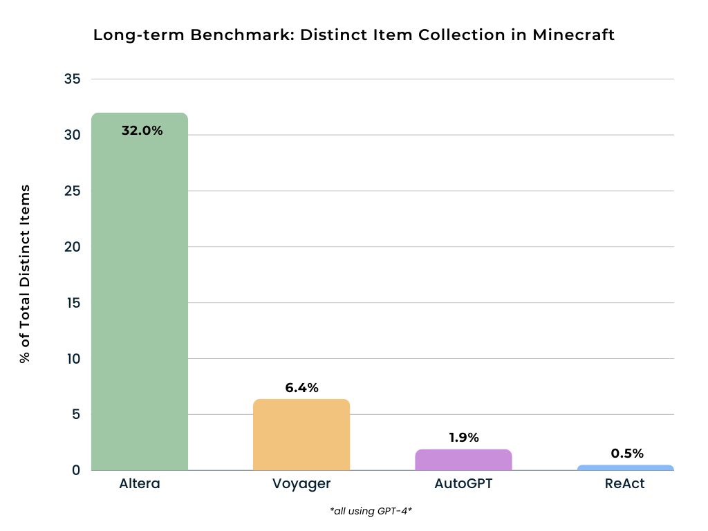 实际上,Robert Yang 此前创立的 AI 初创企业 Altera,在今年五月就推出过一款 AI 陪玩 Agent「Altera Bots」,应用游戏就是《我的世界》。