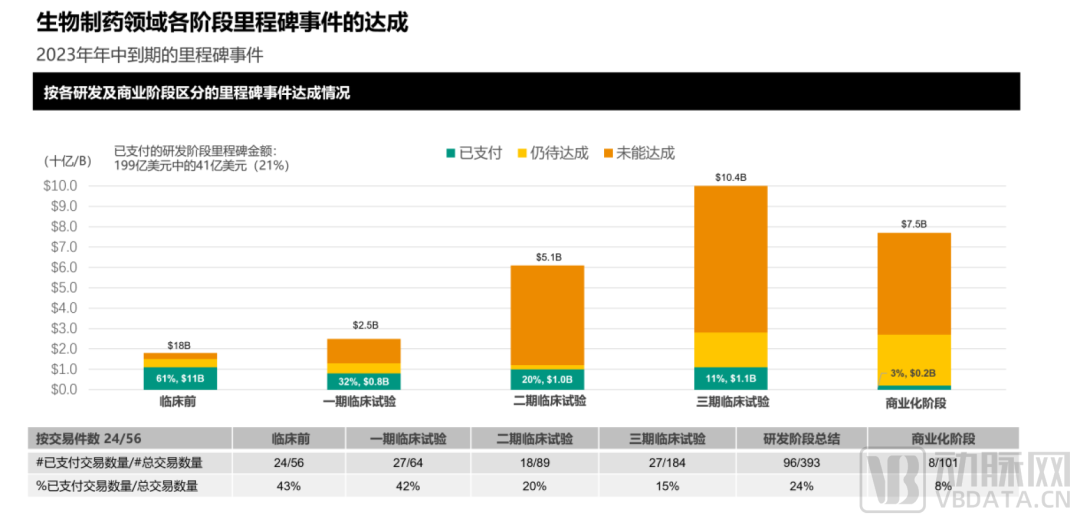 图5.2023年生物制药领域各阶段“里程碑”事件达成情况统计(图片来源:SRS ACQUIOM)