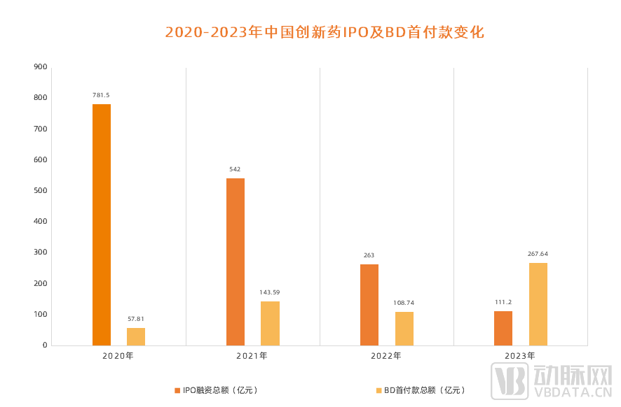 图1.2020-2023年中国创新药IPO及BD首付款变化(数据来源:医药魔方)