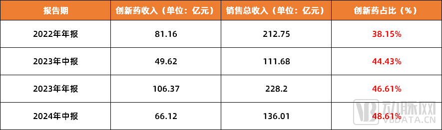 图4.2022-2024恒瑞创新药收入及其占比(数据来源:恒瑞年报)