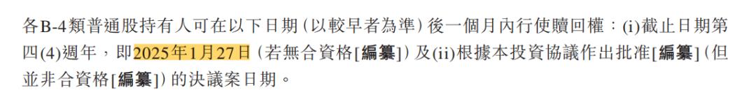 除了业务上的开销,丰巢还需要面对股东赎回权可能导致的负债。丰巢曾在2021年1月与B-4类普通股股东订立投资协议,若丰巢在2025年1月27日没有实现合资格上市,上述投资者有权行使赎回权。