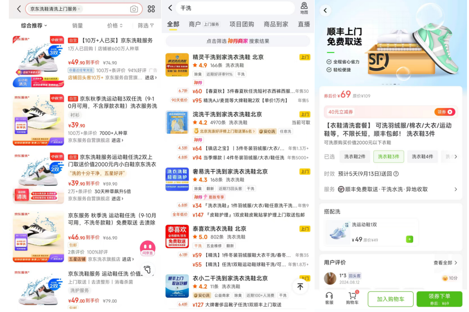 但这些生意也并不好做,尤其是C端的生活服务。不少生活服务的商家会在京东、美团、支付宝等多个平台入驻,从价格到服务,与丰巢洗护基本保持一致。相比入局更早的平台与商家,丰巢的优势并不明显。