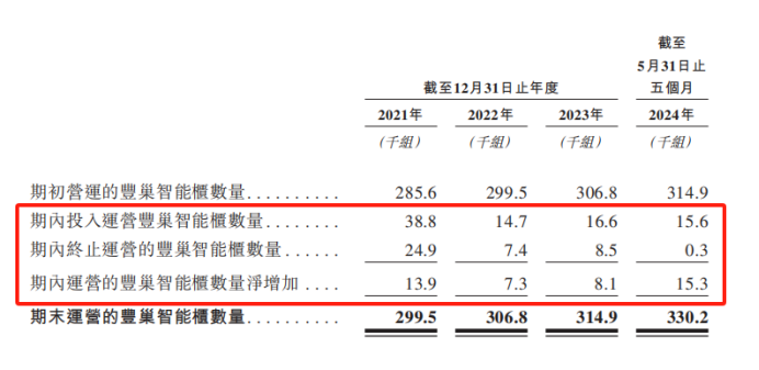 在2024年5月31日止的五个月,丰巢投入了1.56万组快递柜,布局智能快递柜的速度明显加快,对资金的需求度也在加大。