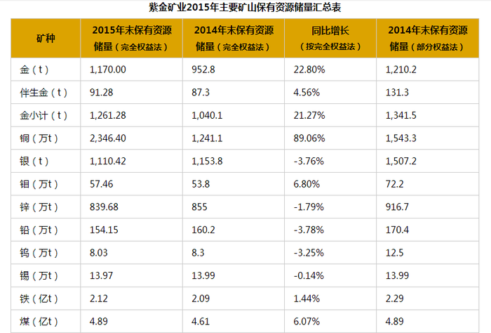 截至2015年底,紫金矿业共有采矿权237个,面积820.56平方公里;探矿权267个,面积2949.82平方公里。
