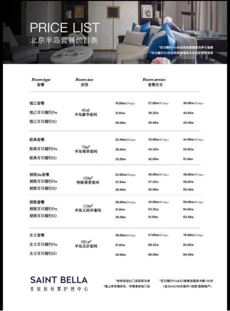 北京半岛酒店月子套餐价目表