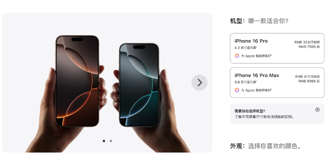 此外,硬件创新成为最大看点。iPhone 16和Plus版本由新款3nm A18芯片支持,Pro和 Pro Max版本搭载的则是3nm A18 Pro芯片,用以支持AI功能及保护隐私。
