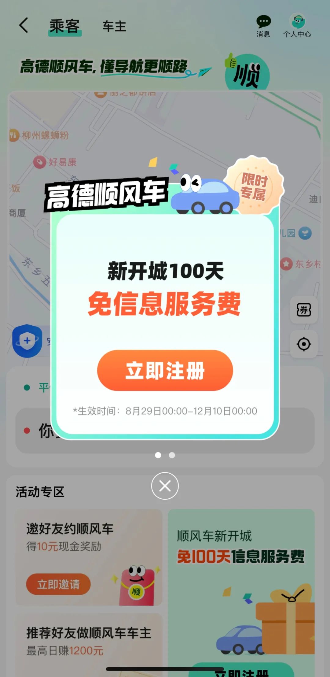 此外,高德也鼓励用户邀请好友成为顺风车车主,每成功邀请一个人完成首单,并且订单距离在15公里以上,用户和车主可以各拿到30块钱的奖励,高德设置的每日上限是,一个用户每天可以借此赚到1200块。
