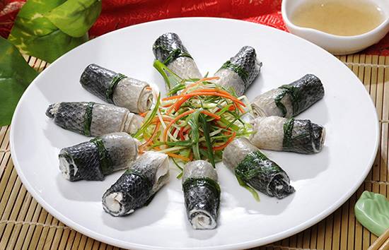 1、将鲜鱼皮洗净,切成长5厘米的细丝备用;