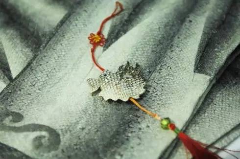 将揉制好的鱼皮摆开,要一张张一块块地按颜色深浅、鳞纹大小筛选出来,再将其拼缝成大块鱼皮布。拼缝鱼皮布,要用鱼皮线、鱼骨针,拼缝时,要把鱼皮的颜色、鱼鳞的纹路,艺术性的拼缝、相接。用鱼皮线拼缝鱼皮布,很难看出“鱼皮布”的缝隙,形如块大的机织布。