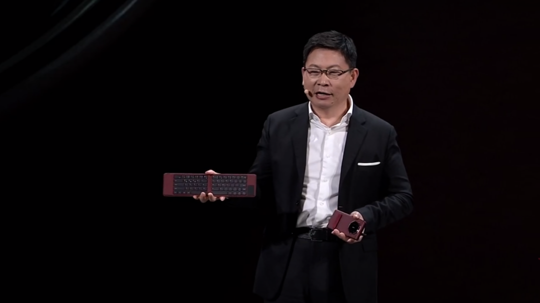 “在把平板装进口袋的同时,华为还要将电脑放进口袋。”说完这句话,余承东从西服内袋里掏出了一款折叠键盘,反差效果拉满。