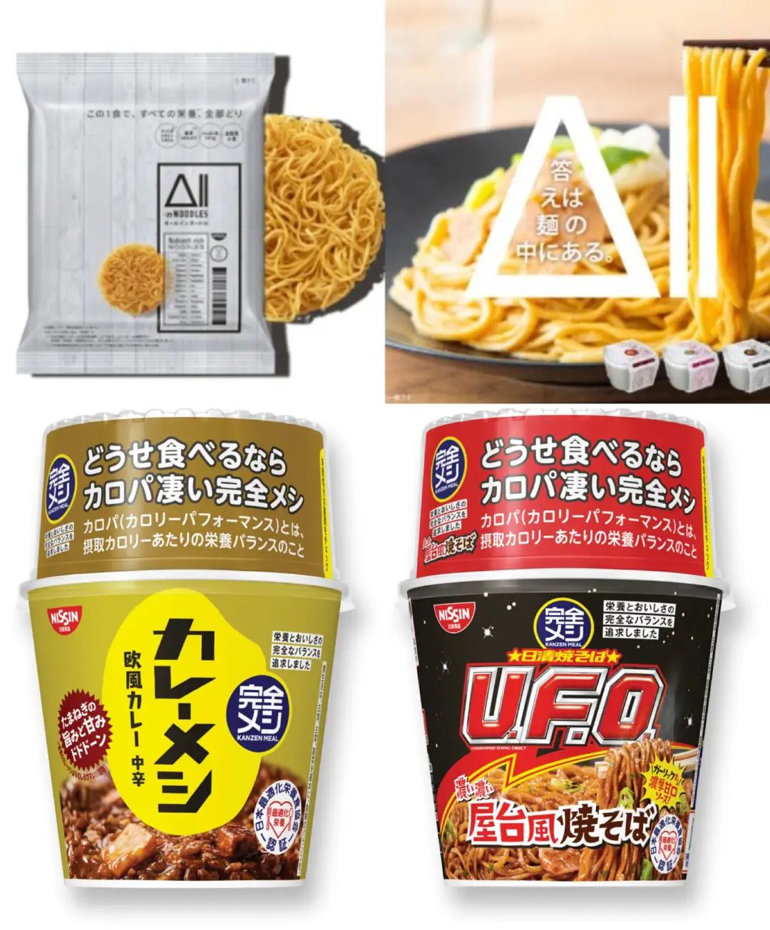 上为“All-in”Noodles系列,下为“全营养餐”系列 图片来源:Mashable SEA、日清官网