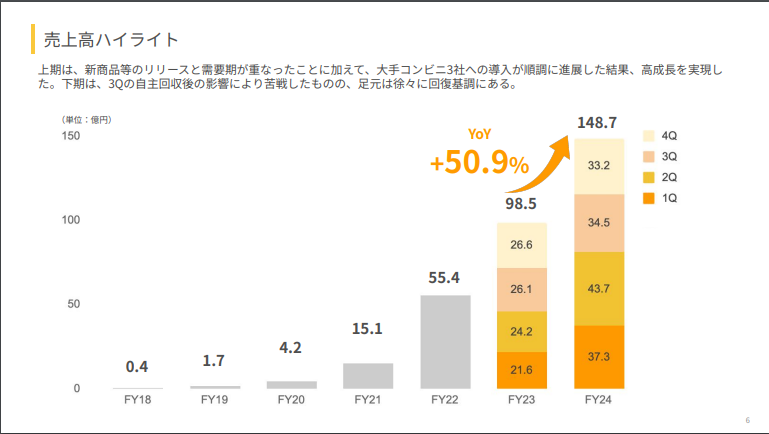 自推出以来,该品牌销售额迎来快速增长、一系列产品已经在市场上取得了亮眼的成绩,2022年销售额达30亿日元,2023销售额达50亿日元,截至2024年7月,累计销量已经突破2900万份。