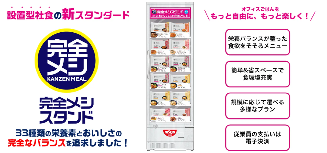 另外为了推广“冷冻全餐”系列,日清在今年5月开始正式提供企业“全营养餐站”服务,这是一种安装在公司冷冻陈列柜,里面装有可以在微波炉中烹饪的“冷冻全餐”。