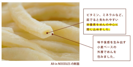 另外,日清还创新性地将营养成分融入面条的中心层部分,使用膳食纤维和蛋白粉替代面条中心的面粉。