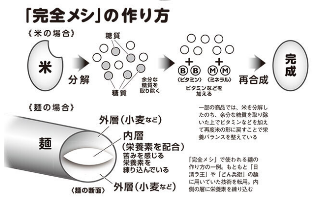 首先,大米会被分解成碎片,去除米饭中多余的碳水化合物后,添加维生素和矿物质,再重新合成米饭。此外,还有一种方法是把米饭和营养素一起煮。
