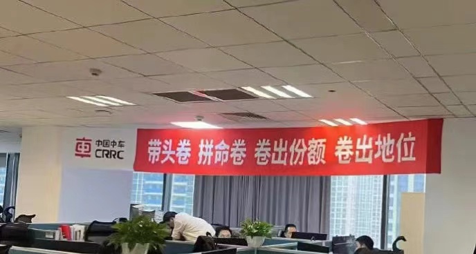 写着这14个字的红底白字横幅,被高挂在办公室天花板下,旁边印着的“中国中车”logo,格外醒目。9月初,这张办公室内部场景照片,在储能业内疯传。