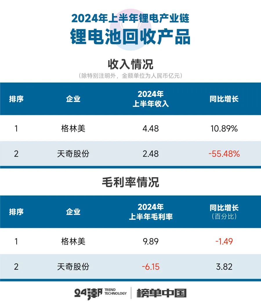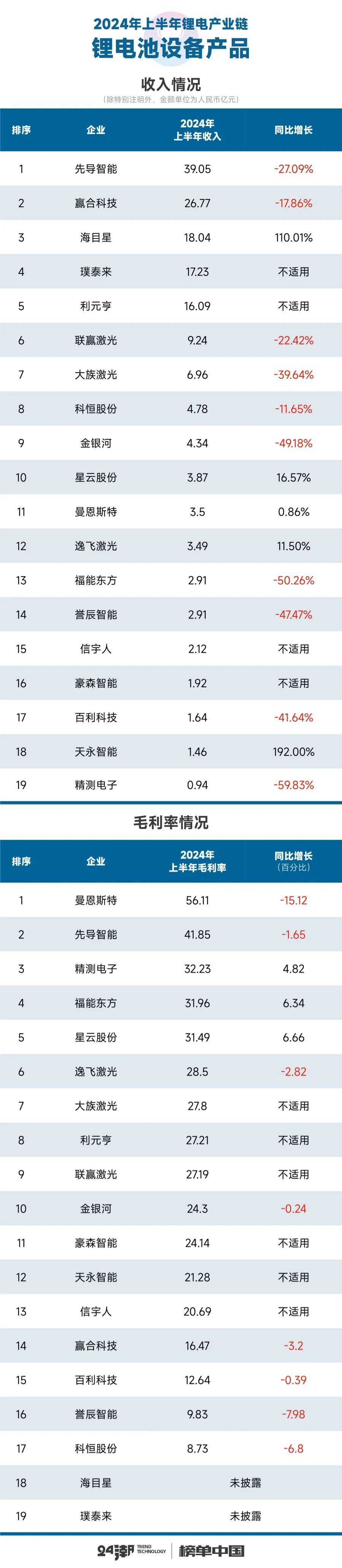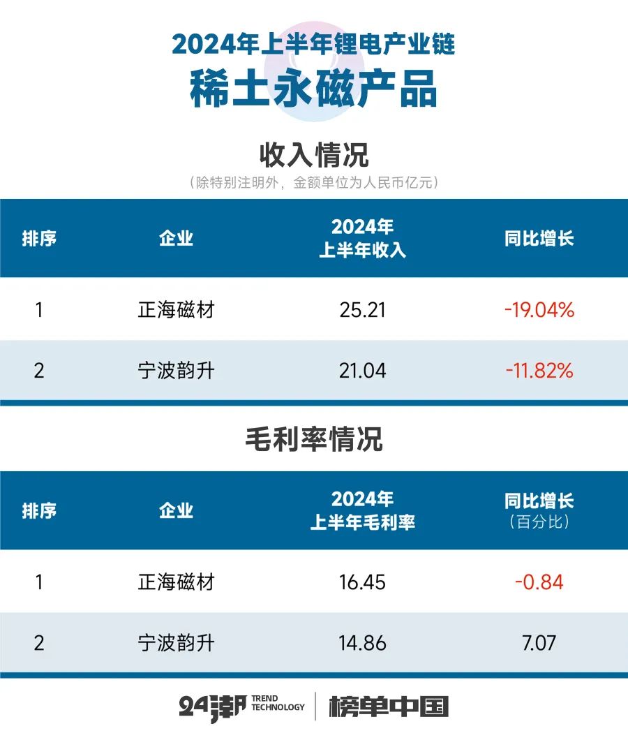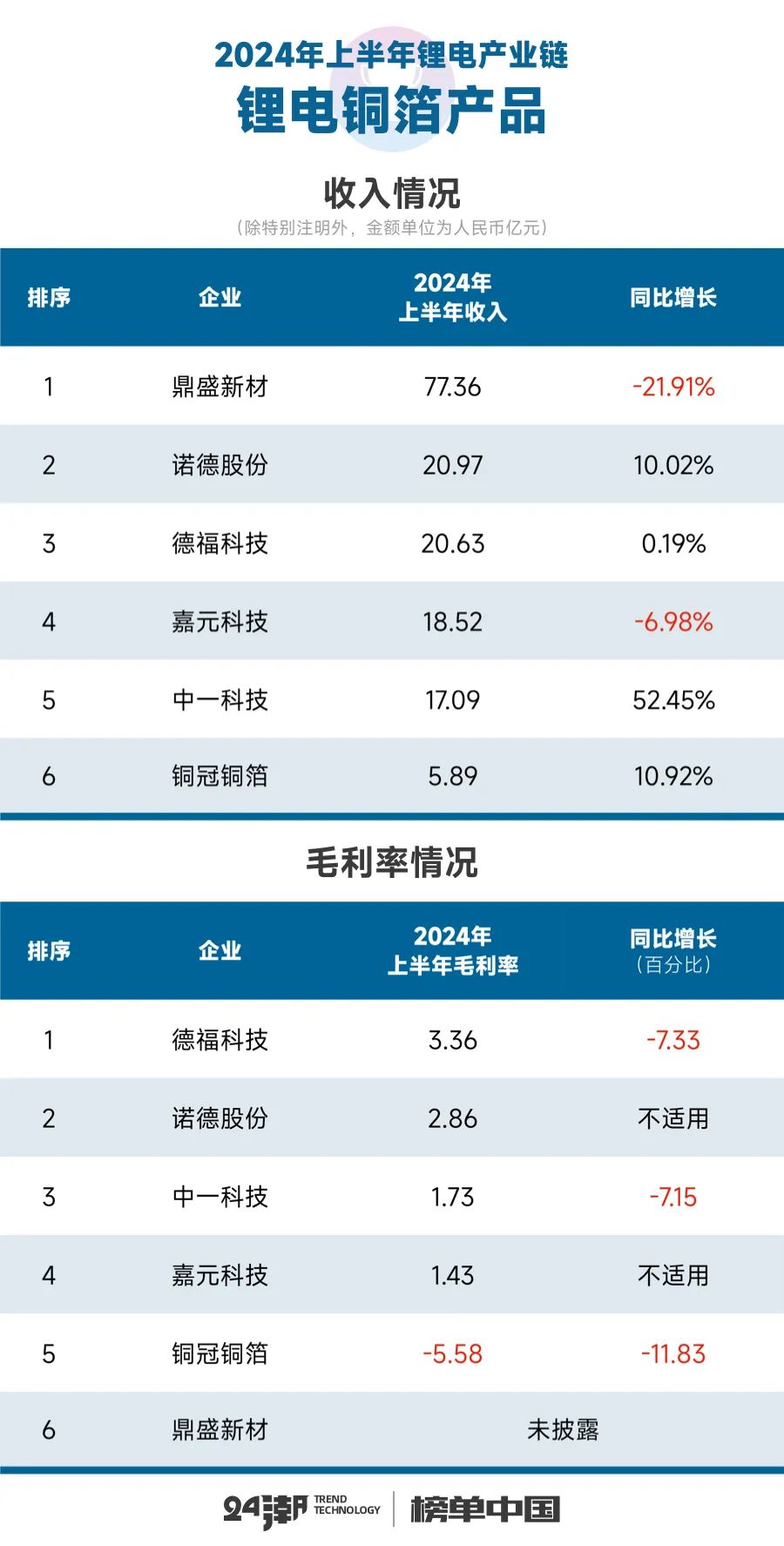 事实上,这一切已经在企业最新财报(2024年半年报)中有所体现。据24潮产业研究院(TTIR)统计分析100多家锂电上市公司财报发现,2024年上半年整个锂电产业链上市公司营业收入合计为4708.10亿元,约同比下降了20.21%;整体毛利率为18.94%,约同比下降了2.26个百分点。