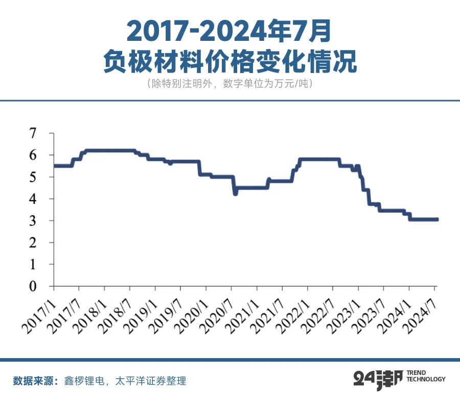 这种背景下,负极材料价格持续走低,均价来到3万元/吨的水平。据太平洋证券观察,今年以来,天然石墨/人造石墨负极材料中高端全线下挫。