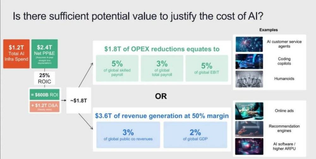 这一支出已得到验证。CoutueAI的报告也提到,预计到2030年,基础设施建设将耗资约1.2万亿美元,主要用于采购大约2500万单位的GPU及其他相关支出。