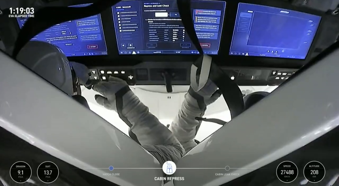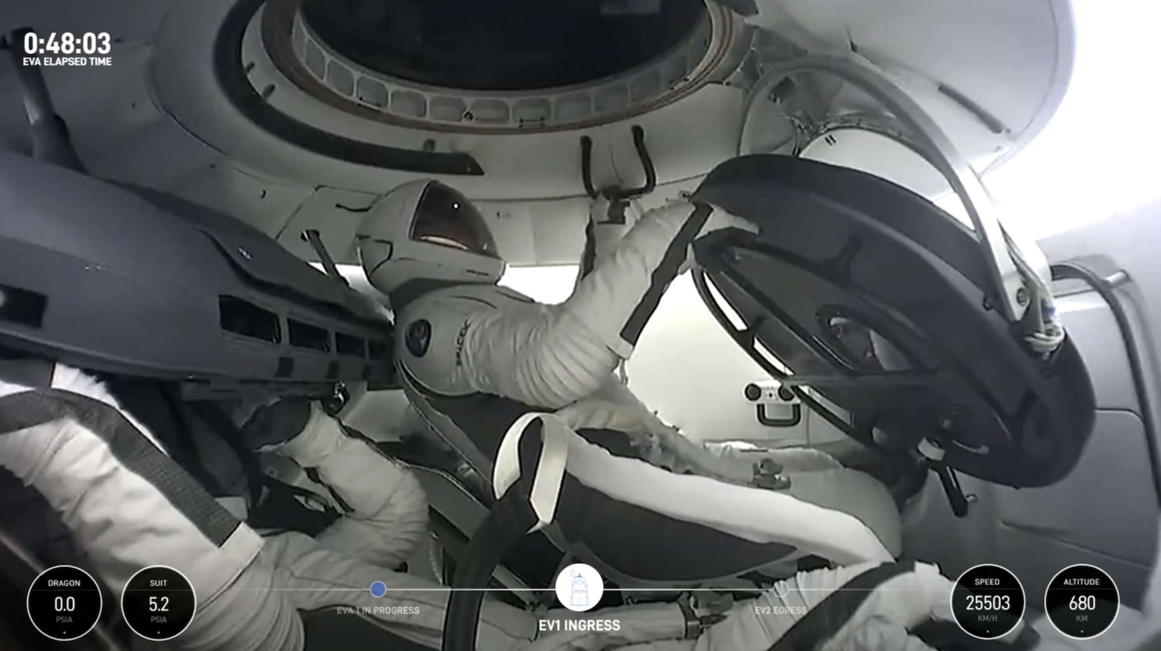 美国东部时间9月12日6时12分(北京时间18时12分),SpaceX “北极星黎明”航天任务的两名机组成员正式开始准备出舱活动。