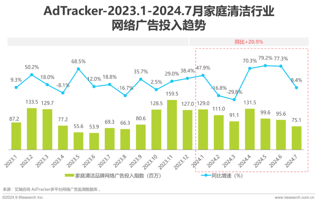 家庭清洁行业投放波动增长,1-7月投入指数同比增长20.9%