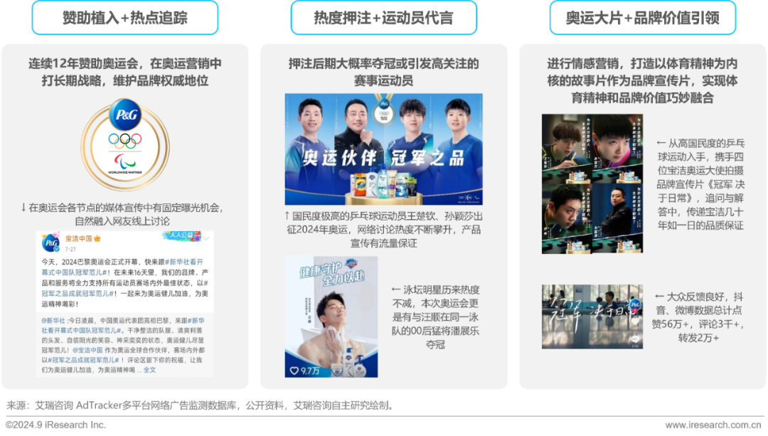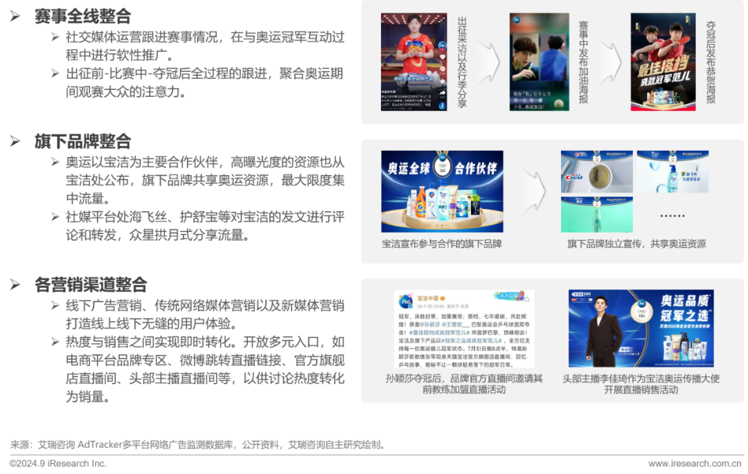 头部日化品牌宝洁与体育赛事强绑定,以新媒体作为主要阵地进行全域整合营销。具体策略有: