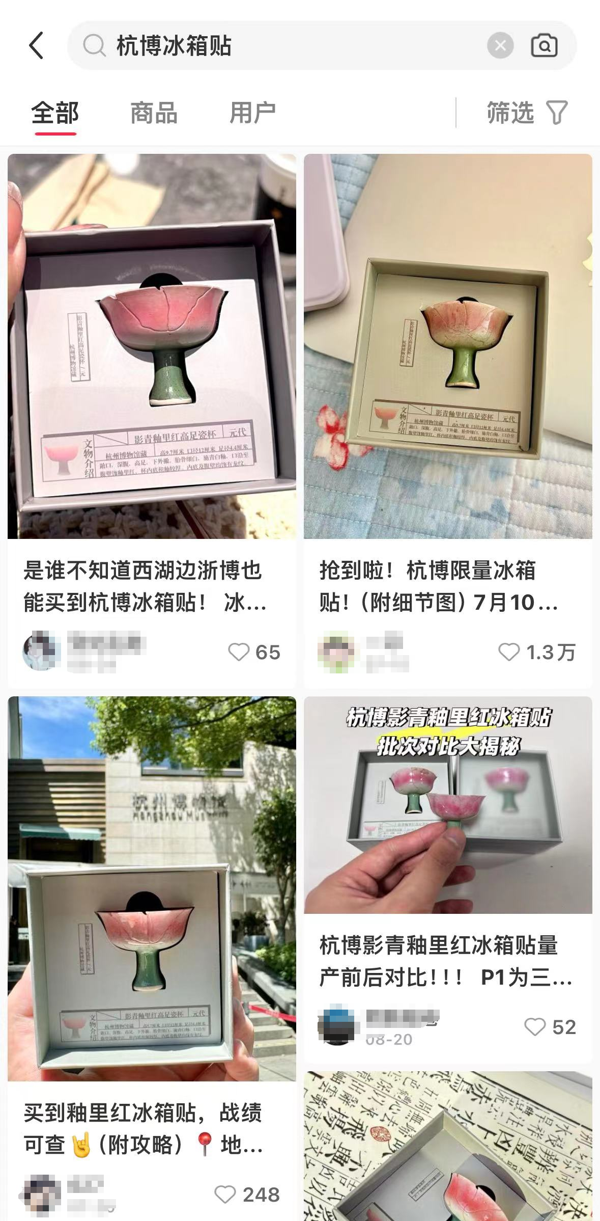 要将原主的高颜值延续到文创产品身上并不容易。小粉杯背后设计团队“博市集M.ART”有提到,样品阶段就经过4-5次调整,首批成品也曾因未能达到预期效果而返厂。待成品开售,游客自然是不会错过拥有如此美貌文物的机会,杭博的小粉杯一度卖到供不应求,以至于进行限购每人一份、每天限量。三峡博物馆的小粉炉也是多次卖到断货,抖音、小红书等平台上话题热度增长也让更多网友种草。