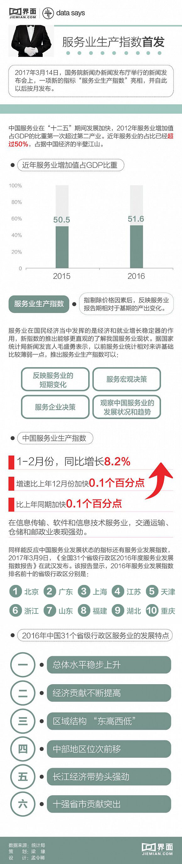 2017年3月14日,国务院新闻办新闻发布厅举行的新闻发布会上,一项新的指标“服务业生产指数”亮相,并自此以后每月发布。