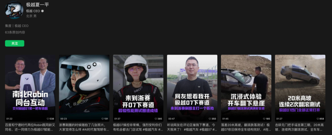 夏一平个人视频号,图源“极越夏一平”视频号