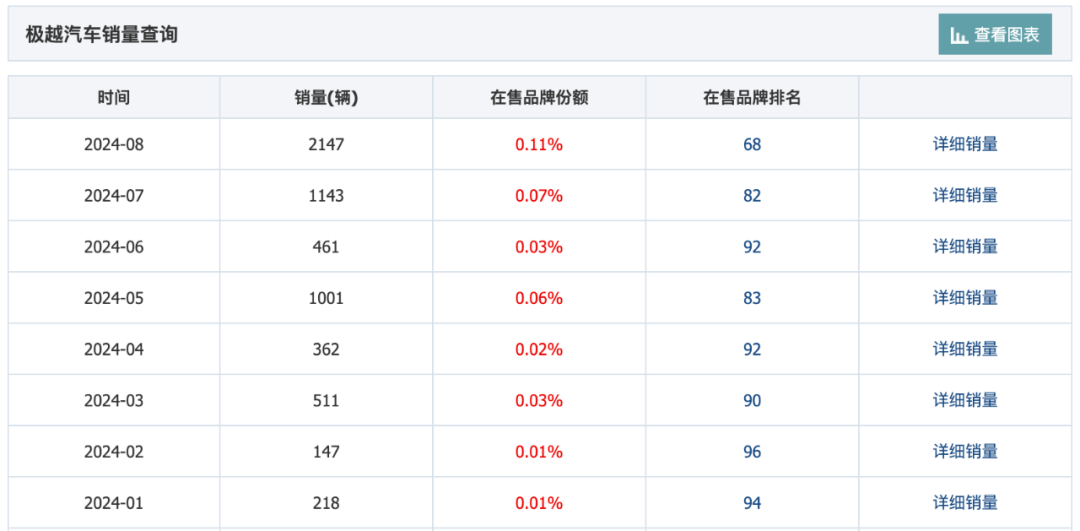 极越汽车2024年各月销量,图源车主之家网站