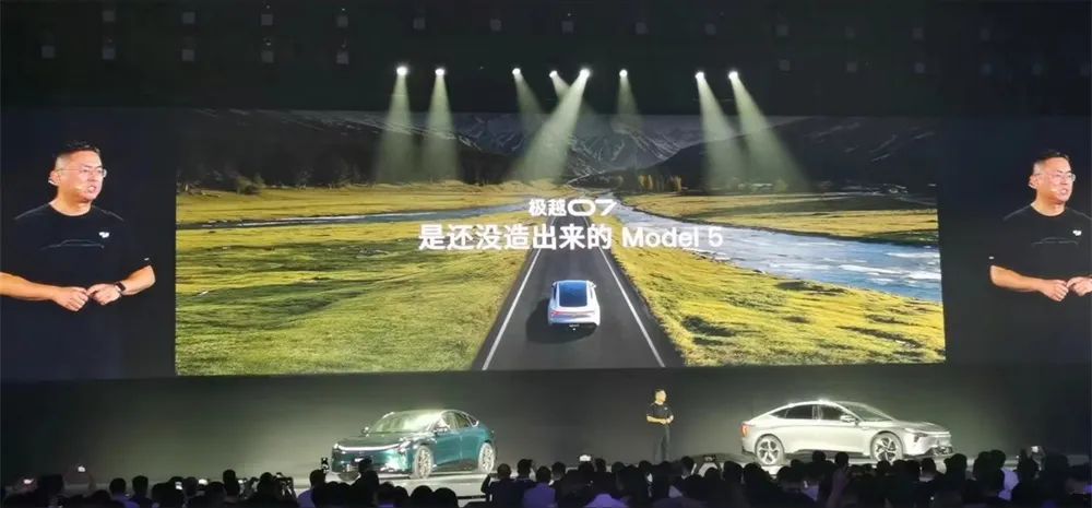 夏一平在介绍新车的时候,讲到“没有特别可以和极越07对比的车型”,并进一步喊话“特斯拉没造出来的Model 5,极越造出来了。”