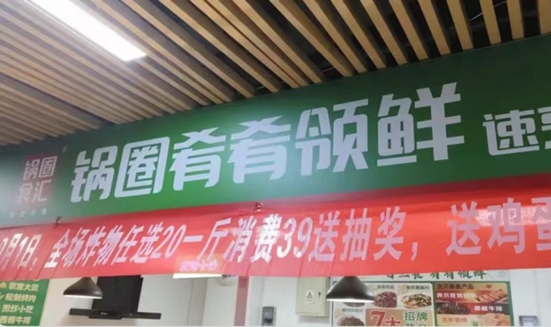 不同于此前锅圈门店的是,这批叫“锅圈肴肴领鲜”的门店主要开在了菜市场里。门店面积方面,锅圈肴肴领鲜远小于常规社区店,据锅圈方面信息,社区店常规在60-80平米,而“锅圈肴肴领鲜”则普遍在10-20平米。