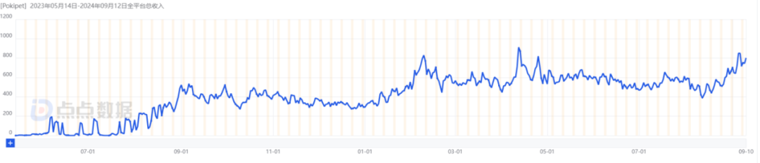 (Pokipet自上线以来收入量,数据来源:点点数据)
