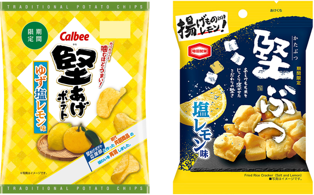 卡乐比推出了一款柚子盐柠檬味薯片,有新鲜柚子香味和柠檬的酸味,还通过添加两种不同粒径的盐增加咸味的层次;龟田制果推出一款海盐柠檬味米果,濑户内海盐衬托出柠檬的浓郁酸味和清爽香气,松脆爽口。