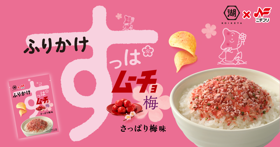 为了在食欲不振的夏天刺激食欲,今年夏天,日本Nichifuri食品公司与湖池屋联合,推出了一款清爽梅子味拌饭肉松,让拌饭肉松这个品类有了酸咸口的新的风味。