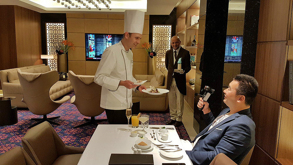 “消费者洞察告诉我们,客人的期待不仅仅是从地上到天上,所以我们要跟上全球生活方式的流行趋势。人们希望能在3.5万英尺的高空享受到顶级酒店和餐厅般的服务,因而我们配备了舱内主厨来准备晚餐,并提供纯天然的床上用品、拖鞋、睡袍,瓷器餐具和可选择的红酒和香槟。”Pierce对界面说。