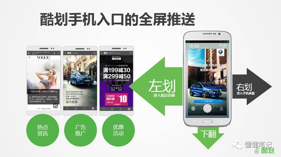 创业三载,张耀亮越发意识到手机屏幕的价值。“手机基本上成为人生活的一部分,你在什么地方都会带着它,手机屏幕一定是最重要的屏,而且它的重要程度会比电视机、PC、电脑都重要,所以手机屏幕一定会变成移动互联网时代的第一入口,应该是最重要的要抢占的入口。”张耀亮对懂懂笔记表示。正基于此,酷划在激励型广告方面不断尝试新的探索,以此来适应广告主和用户的新需求。