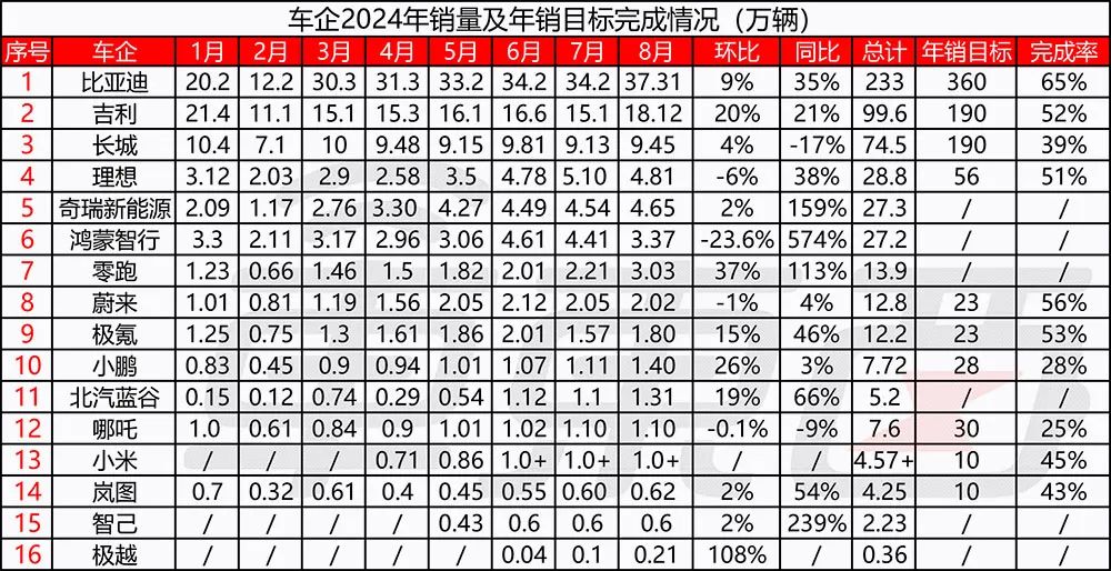 比亚迪也凭借插电混动车的热销,8月销量超过了37万辆,同比大幅增长36%,再次刷新了月度销量纪录。