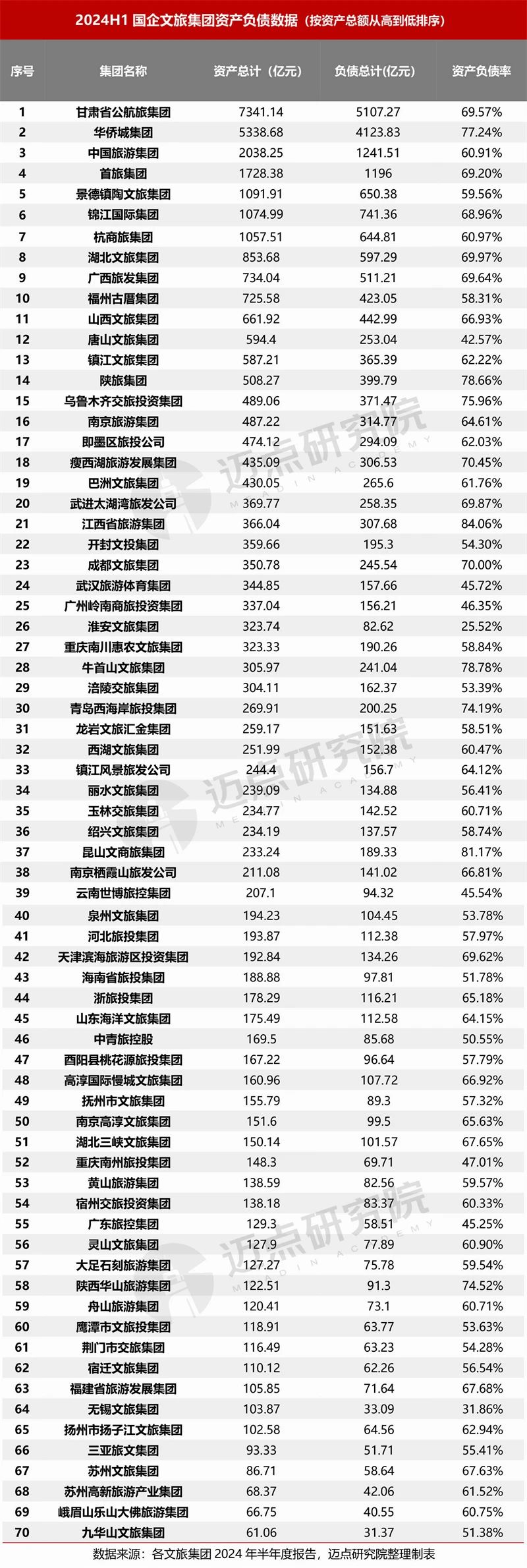 本文以70家国企文旅集团为样本,通过分析这些文旅集团2024上半年的财务核心指标,全面观察和审视过去半年其成长能力、盈利能力、资产负债情况等,剖析其竞争格局、存在问题和发展困境等并研判发展趋势,为国企系文旅集团的未来发展提供思考与借鉴。