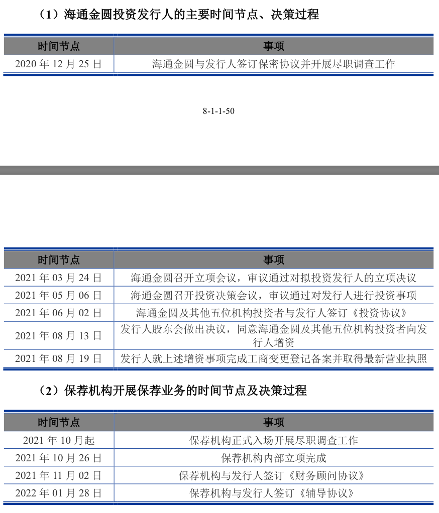 据悉,海通金圆及其他五位机构投资者于2021年6月与盛普股份签订《投资协议》,8月就完成增资和工商变更,10月保荐进场立项,2022年1月签了《辅导协议》,一气呵成。监管层也要求保荐人结合《证券公司私募投资基金子公司管理规范》等有关规则要求,说明其合理性。