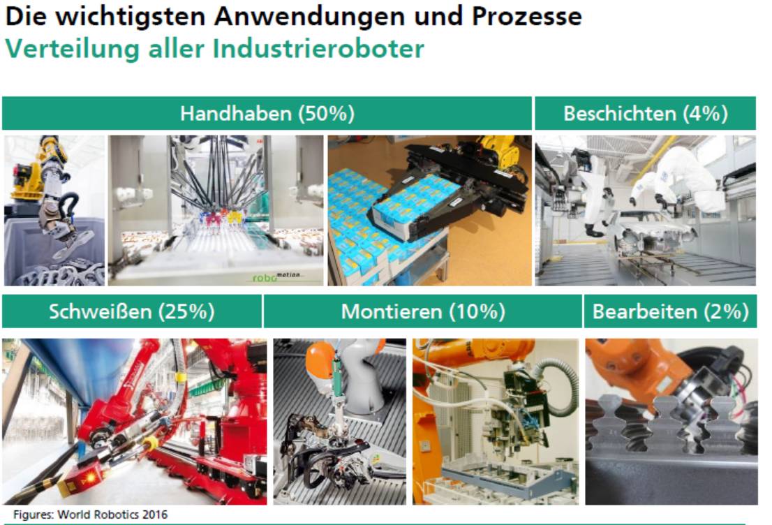 从应用领域来看,2016年的数据显示,全球的工业机器人安装案例,50%应用于装卸、移动和堆垛;25%应用于焊接工序;10%的应用在装配工位;4%应用于喷漆以及表面处理; 而只有2%是应用于机加工。数据体现出:当前的工业机器人主要应用在技术智能化程度低,高重复度的简单工序中,而在精密加工中的应用还处在初级阶段,开发潜能巨大。