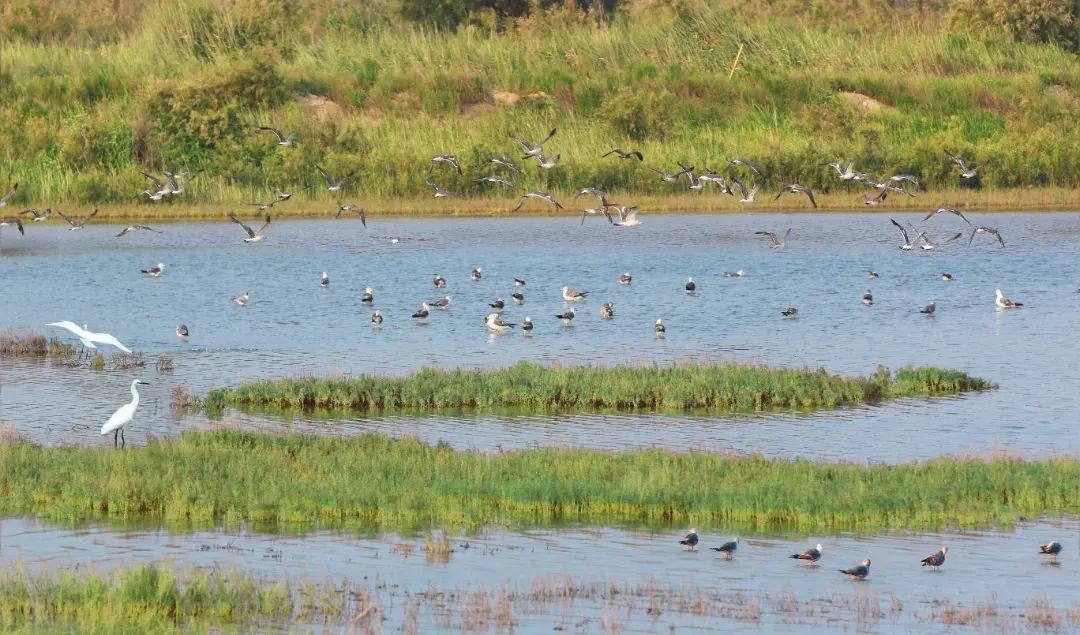 初秋的潍坊滨海,天高海阔、绿意盎然。近日,白浪河入海口处,吸引了白鹭、海鸥等多种野生水鸟聚集休憩,它们时而觅食,时而嬉戏,时而又翱翔天空,与碧水蓝天构成了一道亮丽的风景。
