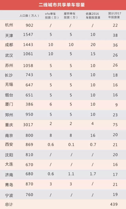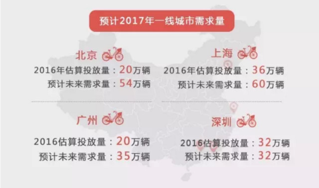 短短半年多时间,共享单车已经迅速覆盖各大一线城市,在资本支持下,随着新一轮产能和投放提速,更多三四线城市正成为摩拜ofo的进军目标。