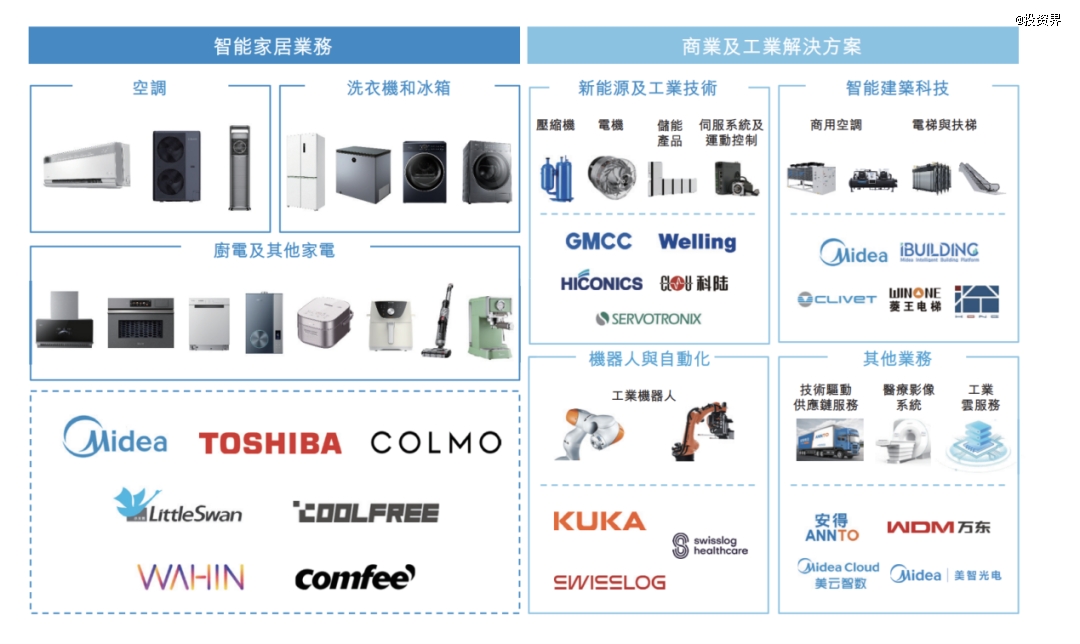 进入21世纪,美的加速驶入冰箱及洗衣机、厨电及其他家电市场,并通过“买买买”一步步扩大自己的家电生态版图,如收购小天鹅、库卡集团、电梯菱王、东芝生活等。面向不同的市场群体,美的集团构建多元化的品牌矩阵,如高端市场的COLMO、TOSHIBA;大众市场的美的、小天鹅、酷风coolfree,以及更年轻群体市场的华凌、COMFEE等。