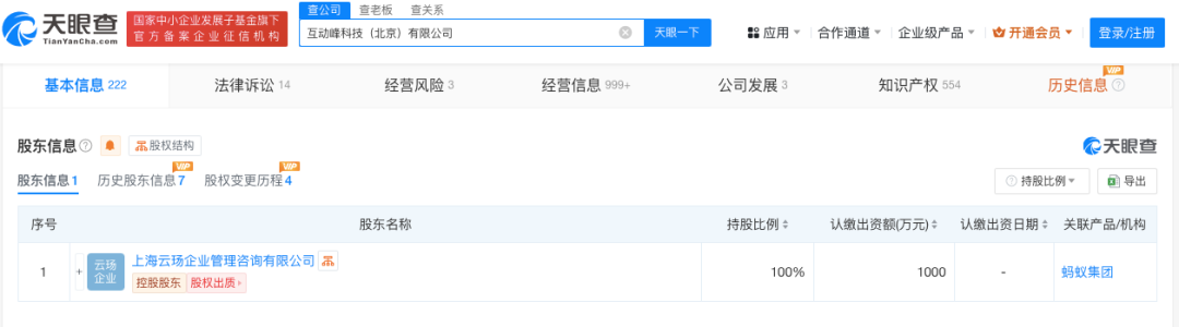 天眼查显示,9月13日,“好大夫在线”的运营主体互动峰科技(北京)有限公司发生工商变更,王航、雷军等股东退出,新增股东上海云玚企业管理咨询有限公司为股东,持股100%。另据信息显示,该公司为蚂蚁科技集团全资子公司。