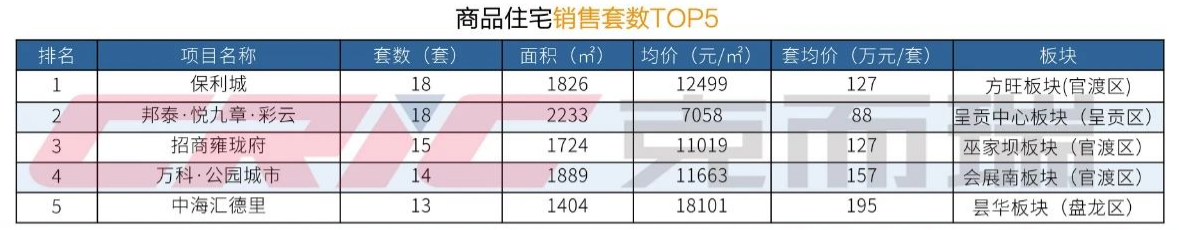 保利城、邦泰·悦九章·彩云、招商雍珑府、万科·公园城市几个热销区域板块的主力项目持续去化,合计成交65套房源,成交均价在1万出头。最低成交均价仍是位于呈贡新城的邦泰·悦九章·彩云,仅为7058元/㎡。