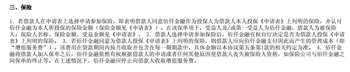 不过,通过借款人贾先生提供的电子合同(注:合同为借款人向客服索要),野马财经注意到,借款人所缴纳的保险受益人并非缴纳保险费的借款人,而是佰仟金融,详见下图:
