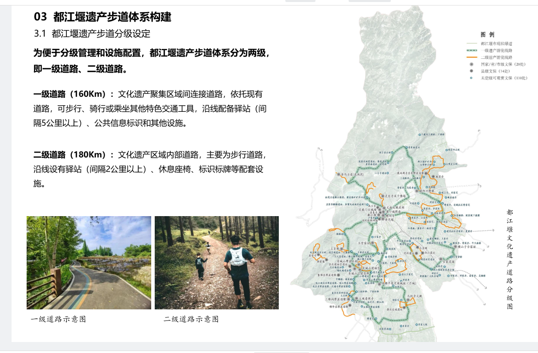聚焦文化遗产保护管理、历史文化遗产展示利用,都江堰积极推进世界遗产管理体制机制改革,成立青城山-都江堰风景名胜区管理委员会,明确世界遗产保护管理主体,补齐短板;推动成立青城山-都江堰文化遗产研究院,促进文化研究发展;完成文化遗产人才评价指标体系,规范文物保护人才评选认定。启动都江堰景区秦堰楼数字场景打造,结合文化理念和视觉维度展现自然与文化内涵;推出文化遗产主题步道游径,建设遗产步道体系,打造示范步道;启动历史文化街区更新活化,如文庙山街等打造特色文化街区;推出数字化产品,如优秀文创纹样 IP 库项目,搜集数字化当地文化遗产资源……都江堰正以多种创新举措,让历史文化遗产在新时代绽放光彩。